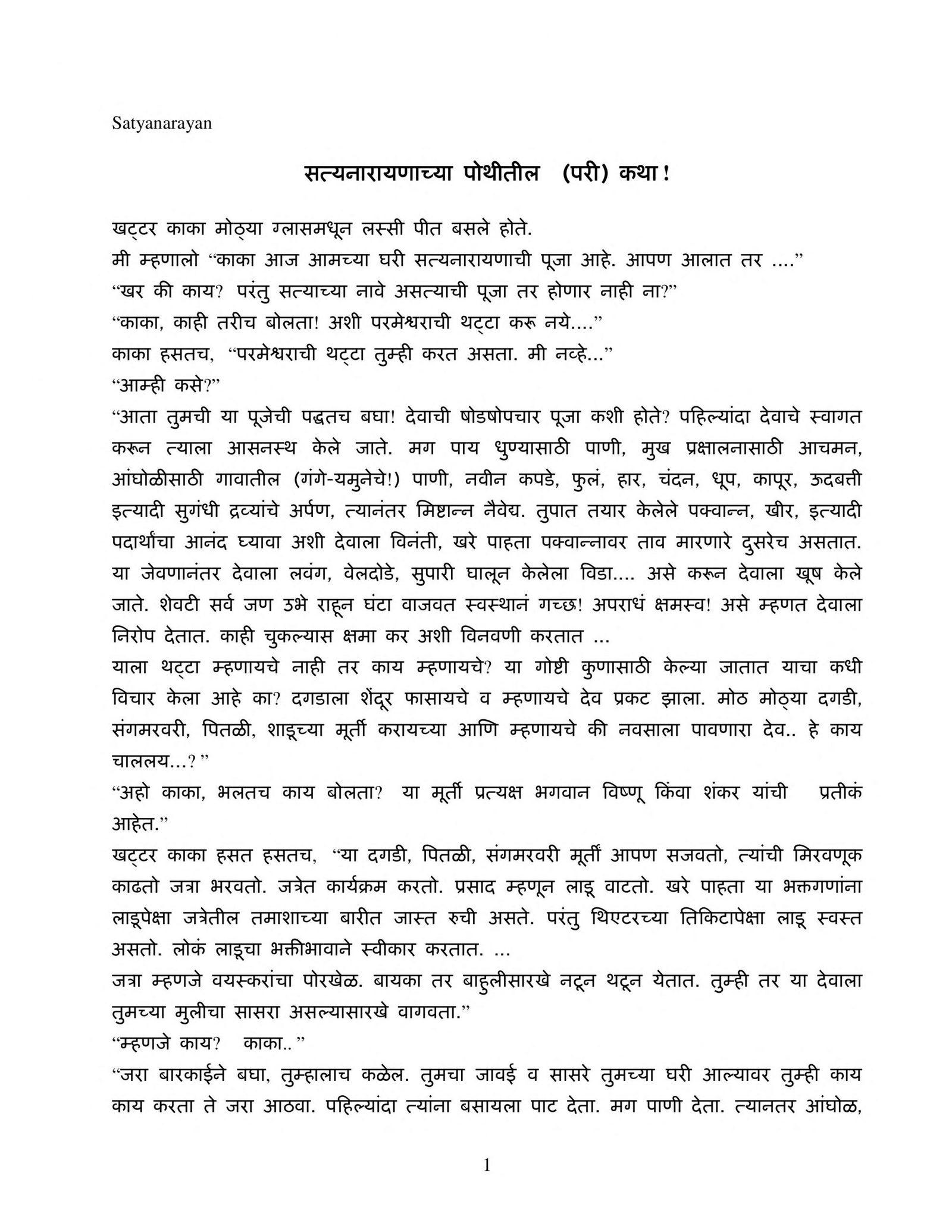 सत्य नारायणाच्या पोथीतील कथा